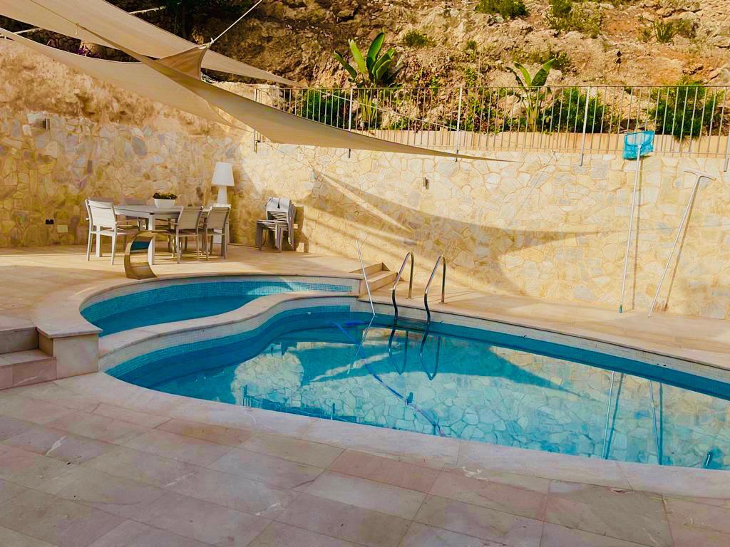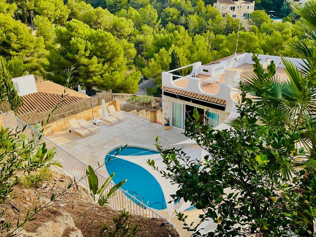 Dieses herrliche, traditionelle Einzelhaus thront in den malerischen Hügeln von Costa d’en Blanes und bietet einen atemberaubenden Blick auf das Meer in südöstlicher Richtung. Auf der Rückseite des Grundstücks erwartet Sie ein ruhiger, privater Poolbereich, der zum Entspannen einlädt. Das Innere dieses Anwesens, das sich auf einer bebauten Fläche von 267 m² erstreckt, besticht durch einen offenen Wohnbereich mit angrenzendem Arbeitszimmer. Beide Räume sind nach vorne zur Villa ausgerichtet und führen zu einer Terrasse, von der aus Sie die Grünflächen und das glitzernde Mittelmeer bewundern können. Auf dieser Ebene finden Sie zudem eine Gästetoilette, eine separate Küche mit Waschküche sowie einen einladenden Essbereich, von dem aus Sie den ruhigen Poolbereich auf der Rückseite der Villa im Blick haben.